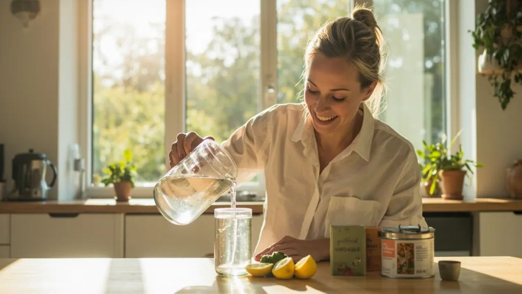 - Viel trinken: Mindestens 2 Liter Wasser oder ungesüßten Kräutertee pro Tag, um die Bakterien aus der Blase zu spülen. Kaffee, Alkohol und säurehaltige Getränke meiden.