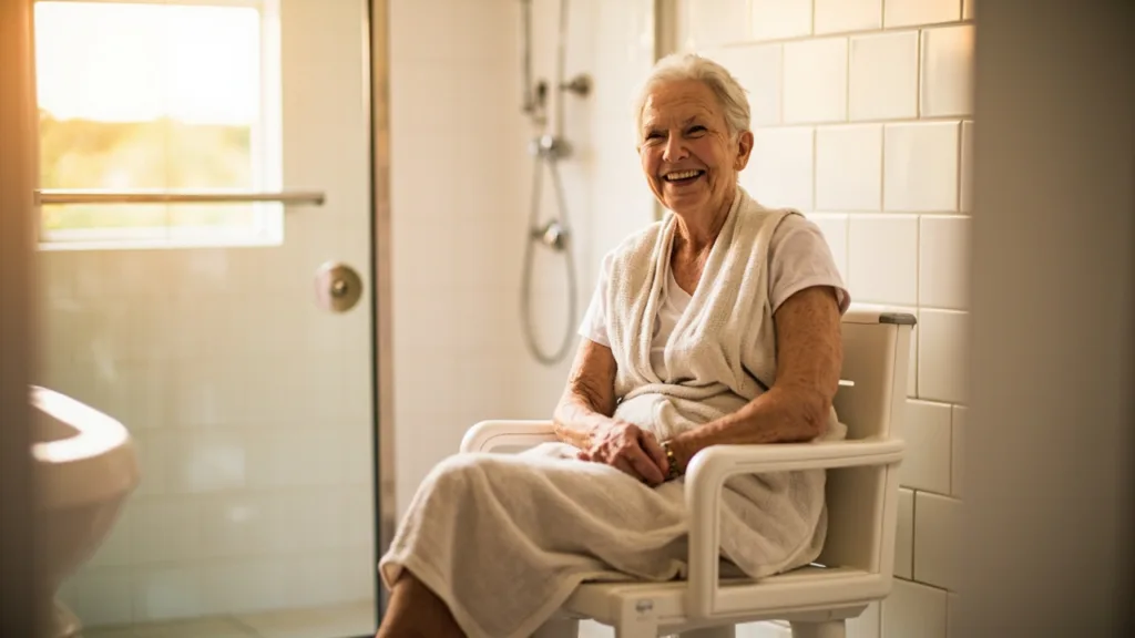 Viele Senioren möchten sich ohne fremde Hilfe waschen. Ein Duschhocker macht genau das möglich und bewahrt die Würde bei der täglichen Körperpflege.