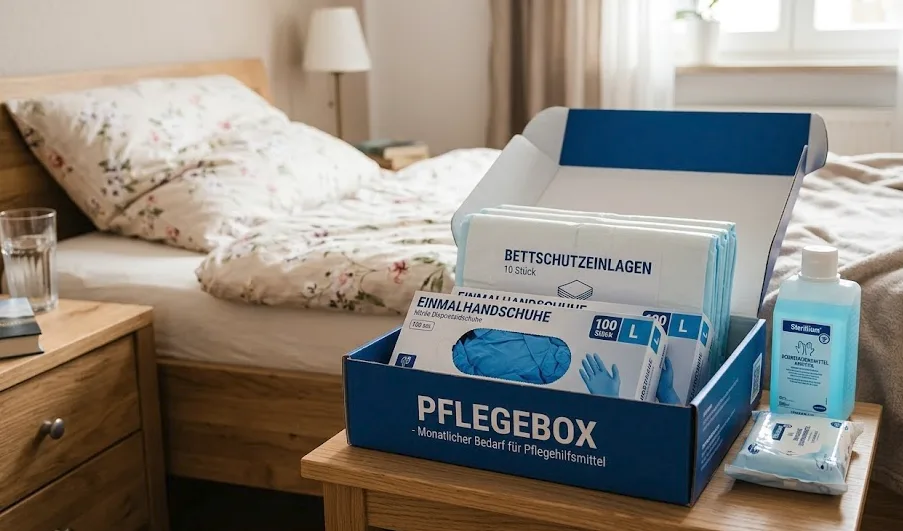 Mit einem anerkannten Pflegegrad erhalten Sie monatlich Pflegehilfsmittel im Wert von bis zu 42 € — kostenfrei und bequem nach Hause geliefert.