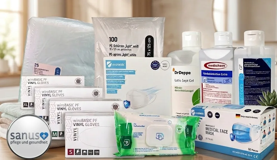 Bestellen Sie jetzt Ihre individuelle Pflegebox und erhalten Sie monatlich kostenlose Pflegehilfsmittel im Wert von bis zu 42 Euro — inklusive Inkontinenzeinlagen, Handschuhe und Bettschutz.