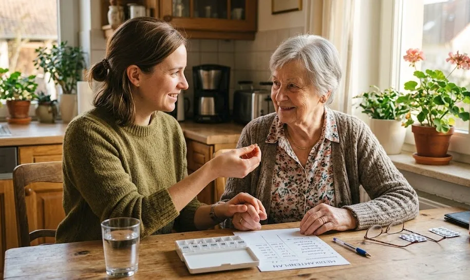 Fünf verschiedene Tabletten am Morgen, Tropfen am Mittag, Salbe am Abend — für pflegebedürftige Menschen und ihre Angehörigen wird das Medikamentenmanagement schnell zur täglichen Herausforderung. Dieser Ratgeber zeigt Ihnen, wie Sie den Überblick behalten, typische Fehler vermeiden und welche Hilfsmittel wirklich entlasten.