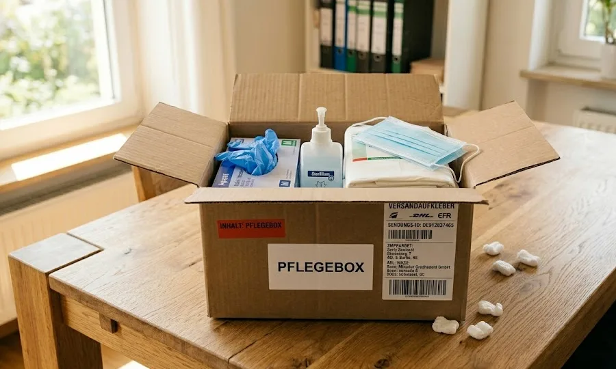 Der einfachste Weg: Sie bestellen eine Pflegebox, die den Mundschutz zusammen mit den übrigen Verbrauchshilfsmitteln enthält. Der Anbieter rechnet die Pflegehilfsmittelpauschale direkt mit Ihrer Pflegekasse ab – Sie zahlen nichts dazu.
